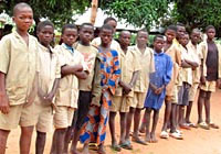 | ベニンのザ・フラ小学校にて。この14人の男の子は、ナイジェリアに売られ児童労働に従事させられていた。 |
