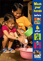 キャンペーンの展開にあたり、日本政府の支援によりユニセフが、タイ保健省や、WHO(世界保健機構)、FAO(国連食糧農業機関)の技術支援を得て製作したポスターとチラシ各200万枚が各学校に配られました。また子どもたちが、鳥インフルエンザの流行を防ぐために行わなければならない事をきちんと理解できるよう、新しいカリキュラムも作られ、小学校には手洗い用の石鹸30万個も配布されました。