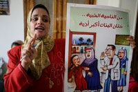 | エジプトの女性たちに、FGMによる健康被害のリスクを教える地域のボランティア、モナ・オマールさん |