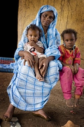 | スーダンに住むアマニさんと二人の娘たち。アマニさん自身はFGMを受けたが、娘たちにはFGMを受けてほしくない、といいます。 |