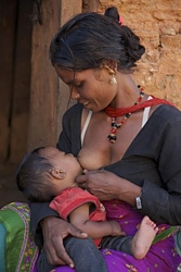 | 母乳で育てられた赤ちゃんは、生後6ヶ月時点での生存率が14倍も高い、といわれている。写真は、母乳を与える母親(ネパール) |