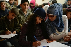 | レバノンの学校で学ぶシリア難民の子どもたち。ユニセフは、難民の子どもたちが避難先の国でも教育が受けられるように支援しています。 |