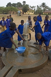 | ユニセフが支援したポンプで水を汲むナイジェリアの生徒。 |