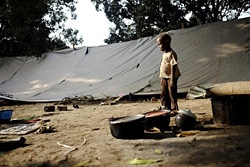| バンギの避難民施設に身を寄せる男の子。 |