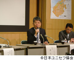 ユニセフ(国連児童基金)駐日事務所代表・浦元義照氏が、スマトラ沖地震・津波被災地における子どもたちのニーズや今後の支援のあり方などを調査するため、最も深刻な被害を受けた国のひとつ、インドネシアを訪問。感染症などによる二次災害や人身売買等の危機に晒されている子どもたちの状況と、ユニセフの現在、そして今後の支援活動について報告しました。当日の模様をご報告いたします。