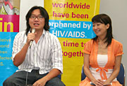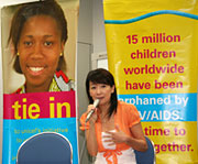 HIV/エイズに対する偏見や差別におびえ、ひっそりと暮らすHIV感染者のお母さんと子ども。エイズで両親を亡くし、きょうだいだけで暮らす子どもたち…。防げる病気であるにも関らず、沈黙や偏見、無関心によって病が広がり、子どもと国の将来が壊されつつある現状を、アグネス大使がときに涙で声をつまらせながら報告しました。報告の後半では、視察に同行した金子和平さんが、元子どもネットワーカーの視点から現地の子どもたちの様子を報告してくれました。