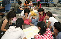 これまで2005年夏と、2006年の春の2回にわたって、子どもたちをとりまくエイズの問題について、いろいろなことを学び、意見交換をしてきました。今回のセミナーでは、これまでの活動を通じて、エイズとたたかう子どもたちのために何ができるかを、子どもたち自身が考えました。