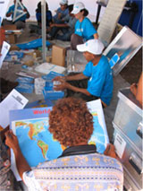 緊急支援が開始されて以来、東ティモール政府を中心として、国際機関やNGOなどさまざまな組織が活動していますが、ユニセフはその中でも主要な役割を担っています。ユニセフは、避難民キャンプの子どもたちの教育や衛生状態、保健や栄養状態などの状況把握を迅速に行い、政府や子どもの福祉を担当する関連省庁にスタッフを派遣し、各分野での支援活動にアドバイスしています。