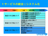 実際には、予防接種とともにビタミンAの補給、妊産婦検診プラスアルファ、蚊帳などの非常に結果が出やすいところからスタートし、現地の能力に応じて拡大していきます。政府と地方政府に主導させて彼らが中心となり、ペースが遅いときはユニセフが協力してペースアップを図りました。