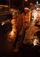 | 雨の中、寝る場所を探すストリート・チルドレン=ハジ・アリ モスク付近(ボンベイ中央地区) |