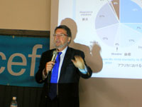 マスコミの報道などで、「暗黒大陸」としてのイメージを与えられがちのアフリカの「今」と、この大陸の子どもたちの未来を支える大きな力となっている日本のみなさまに、その成果を伝えるため、23日(火)、来年5月にTICAD IV(第4回アフリカ開発会議)の開催を控えた横浜市で、ユニセフ東部・南部アフリカ地域事務所のペール・エンゲバック所長による現地報告会が開催されました。