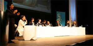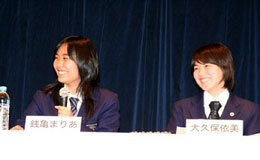 銭亀まりあ(以下銭亀):こんにちは。私は、都立国際高校に在学している高校三年の銭亀まりあといいます。 私たちは去年の夏、2006年に、ロシアのサンクトペテルブルクに行って、J8(ジュニアエイト)サミットに参加してきました。その中で、私たちが話し合ったことで一番問題になったのは、先進国でもそうなのですが、開発途上国で、伝染病だったり、いろいろなことに対するもっと的確で正しい情報を、いろいろな人に伝える必要があるということが、一番大きな話し合いになりました。 私たちは話し合いの中で、J8各国だけではなくて、4つの開発途上国の子どもたちと一緒に、医療カンファレンスのなかで話をする機会がありました。そこで私が話したのは、アフリカの子だったのですけれども、印象に残ったことは、アフリカではHIV/エイズの検査ができるように、ユニセフやほかのNGO団体の方が、いろいろな活動をしているのですが、みんなその検査を受けたがらないという話でした。 アフリカではいまだにエイズに関する偏見があって、そのために自分の結果が人に伝わってしまうことをとても恐れていることから、みんな絶対に検査を受けたくないと言っていました。 私はJ8サミットを通じ、世界中に友達ができたことが、世界に目を向けるきっかけになったと、とても感じています。もし、私がたくさんの国の子たちに出会わなかったら、今までは他人事のように感じていた世界のニュースなども、友達がその国にいるということだけで、自分の国のように思えることに気づいたのです。そこで、私たちはもっと他国の子どもとのつながりを持つべきだと、強く感じました。 インターネットや本などで調べること、そして、テレビで見ることとは全く違って、生の声を聞くということが、とても自分を変えると思いました。友達をつくることは、今、世界中で問題になっている戦争だったり、環境だったり、子どもの貧困の問題だったり、すべての問題につながるということが感じられました。 J8サミットに行ったことは、一つのスタートで、J8サミットに行ったことによって、世界に興味を持ち、いろいろなことにつながりを持てるようになりました。今日のシンポジウムにお招きいただいたように、このようなたくさんの人々の前で意見を話すことのできるきっかけをいただけたのもJ8サミットに参加したからです。 その中で、私はNGOのいろいろな行事やシンポジウムなどに参加してきて、感じたことなのですが、日本のNGOはもっと国民に自分たちのやっていることを伝えていきたいとか、今、世界で起こっていることを日本の国民に伝えていきたいと強く言っていたのですが、その中に「子どもに」という言葉が一言も含まれていなかったことに、とても疑問を持ちました。今からの世界は子どもである私たちがつくっていくもので、今のうちからいろいろなことを知っていくべきなのは、やはり子どもだと思うのです。その中で、子どもに伝えようという意識をもっとおとなに持ってもらいたいなと、とても感じました。 そして、ほかの国でもそうなんですが、子どもが自己の表現をできる場を、これからもっとたくさん設けていくことがとても必要だと、J8に行って感じました。 アグネス:自分たち子どもの声はみんなに聞いてもらいたいし、ほかの子どもたちの声も聞きたいですものね。ユニセフはいつでも聞いていますから、何か話したいときは、ぜひ私たちに。私たち、ユニセフは、日本国内でも、学校に対して一生懸命活動しています。子どもたちに世界の子どもたちのことを知ってもらいたいのです。そのことによって、いろいろ変わるかなって、長期的な考えなのですが、とても大切だと思うし、全く同じ意見です。今、私たちの思う大切なことを話してくれて、すごくうれしかった。ありがとうございました。 さて、皆さん、お待たせしました。私の子どもが小さいとき、テレビでのっぽさんを見ました。高見さん、来てくださってありがとうございます。今まで、基調報告をはじめ、いろいろな方のお話を聞いて、ぜひ意見を聞かせてください。