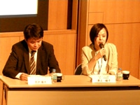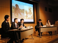 事例報告後行われたパネルディスカッションには、公益団体として活動を行っている日本トイレ協会の加藤篤氏、日本ユニセフ協会の浦上綾子が加わり、王子ネピア株式会社、ダノンウォーターズオブジャパン株式会社とのそれぞれの取り組みについて、企業とパートナーシップを組むことでできる社会貢献の強みについて報告しました。また、企業のお二人からは、プロジェクトを通して得られた成果などが紹介されました。
