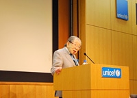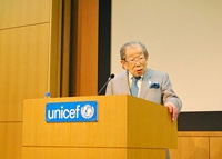 しかしながら、私はアメリカに何度も行っていますが、アメリカでは、生きている間に財産の半分をよきことのために使おうという資産家のグループもありますし、96.5パーセント、遺産を寄付するという事業家もおります。私たちは裸で生まれて裸で死ぬのです。お金を持って死ぬことはできません。私は、遺産も全てよきことのために捧げましょうと言っていますが、こういう趣旨に理解をする人は少ないです。ですが、ユニセフのような活動に理解のある方々に、その額にかかわらず、生前に遺産相続についての手続きをしておいて頂きたいと思います。日本ユニセフ協会が一生懸命になって取り組んでいることに、ファンドレイジング(寄付)があります。寄付して下さる方が一人でも増えることを私は切に願っております。