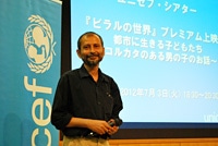 7月3日(火)、秋の一般公開に先立ち、ソーラヴ・サーランギ監督の来日に合わせて、映画『ビラルの世界』プレミアム上映会を開催。ユニセフハウスには、100名を超える皆様にご来場いただき、会場は、ほぼ満席となりました。本作品は、盲目の両親とインド・コルカタ(カルカッタ)のスラム街で暮らす男の子ビラルの日常を映し出したドキュメンタリー映画です。