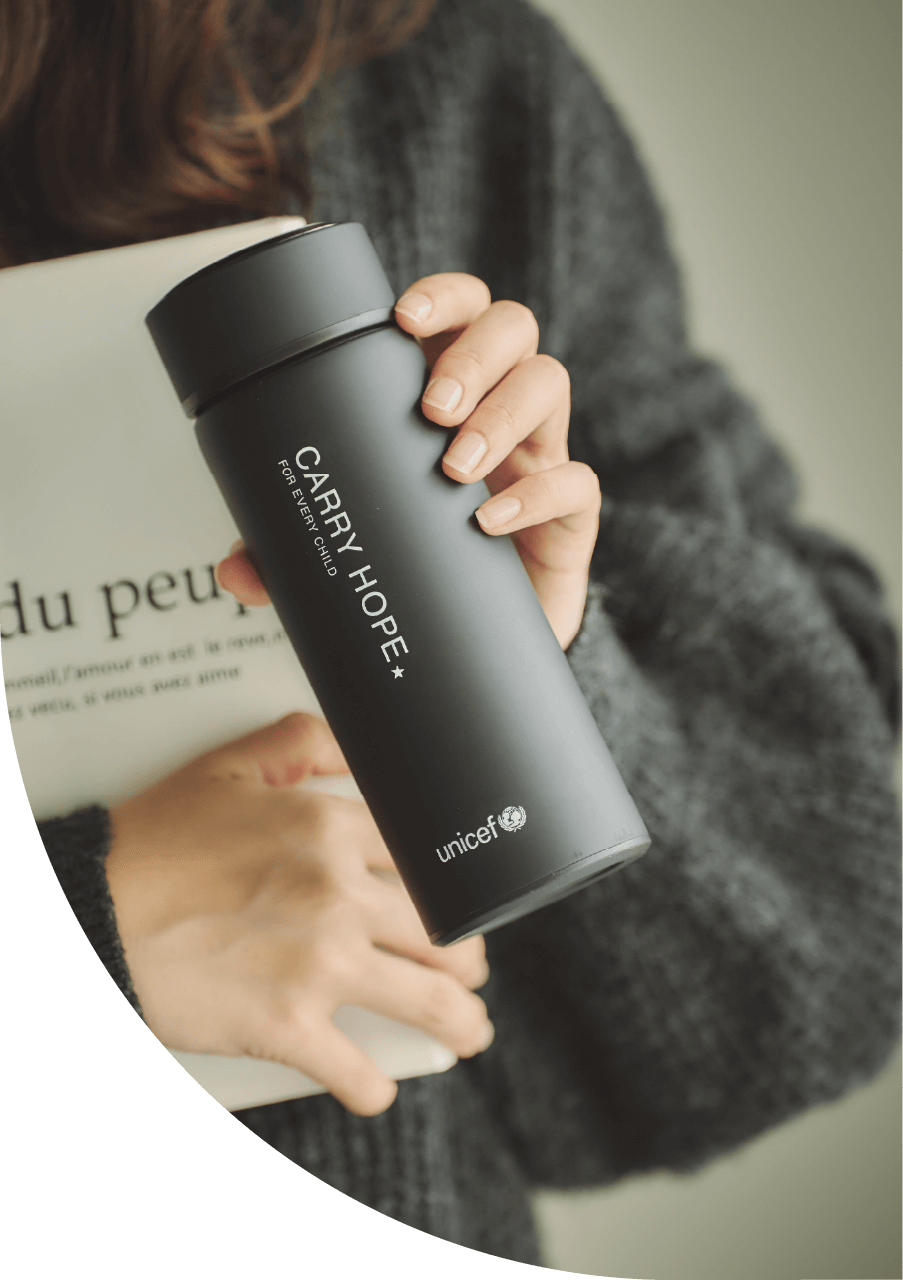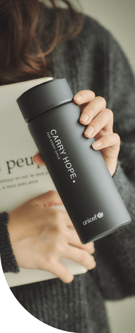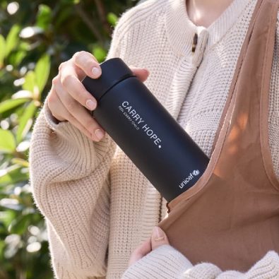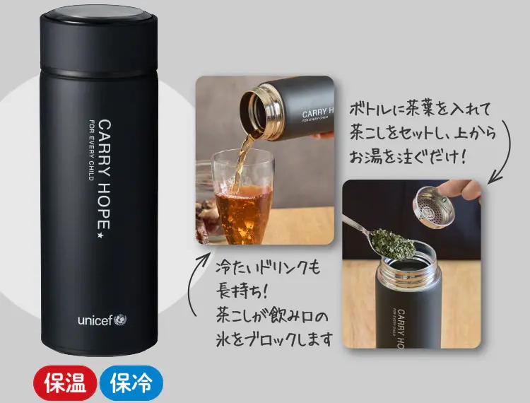 ご希望者に“ユニセフ・ステンレスボトル”をプレゼント中です。