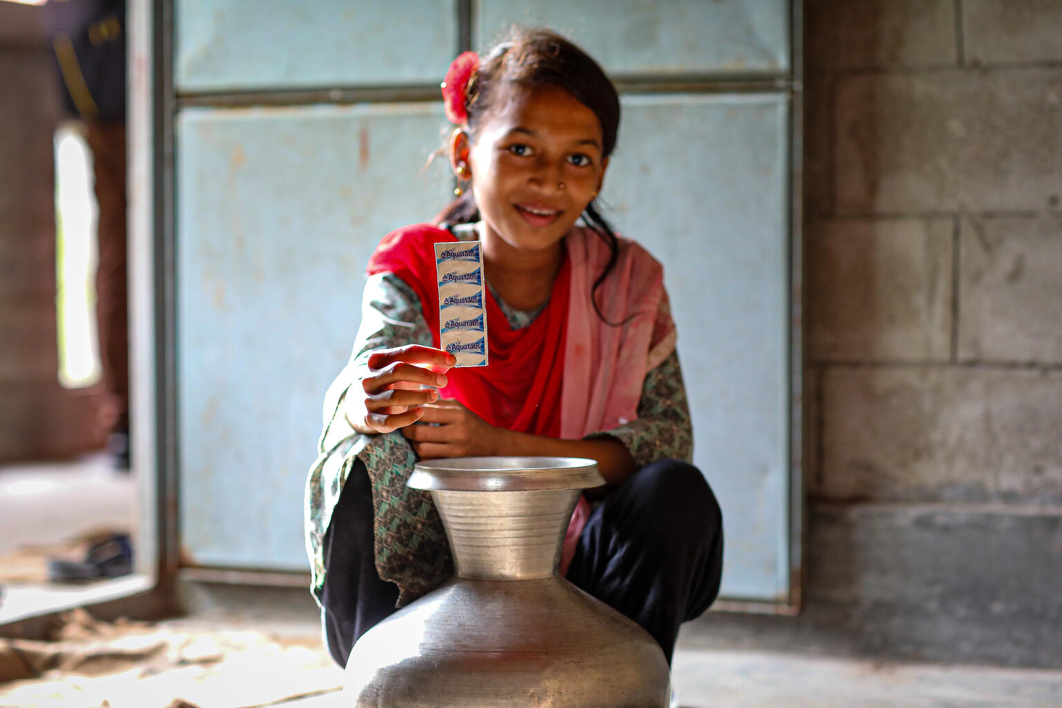 5歳未満の子どもが亡くなる大きな原因である下痢。汚染された飲料水や衛生設備の欠如、不衛生な環境に起因する下痢性疾患によって、一日700人以上の5歳未満の子どもが命を落としています。ORS(経口補水塩)を与えることで、下痢、嘔吐、発熱による危険な脱水症状から子どもたちを守ることができます。