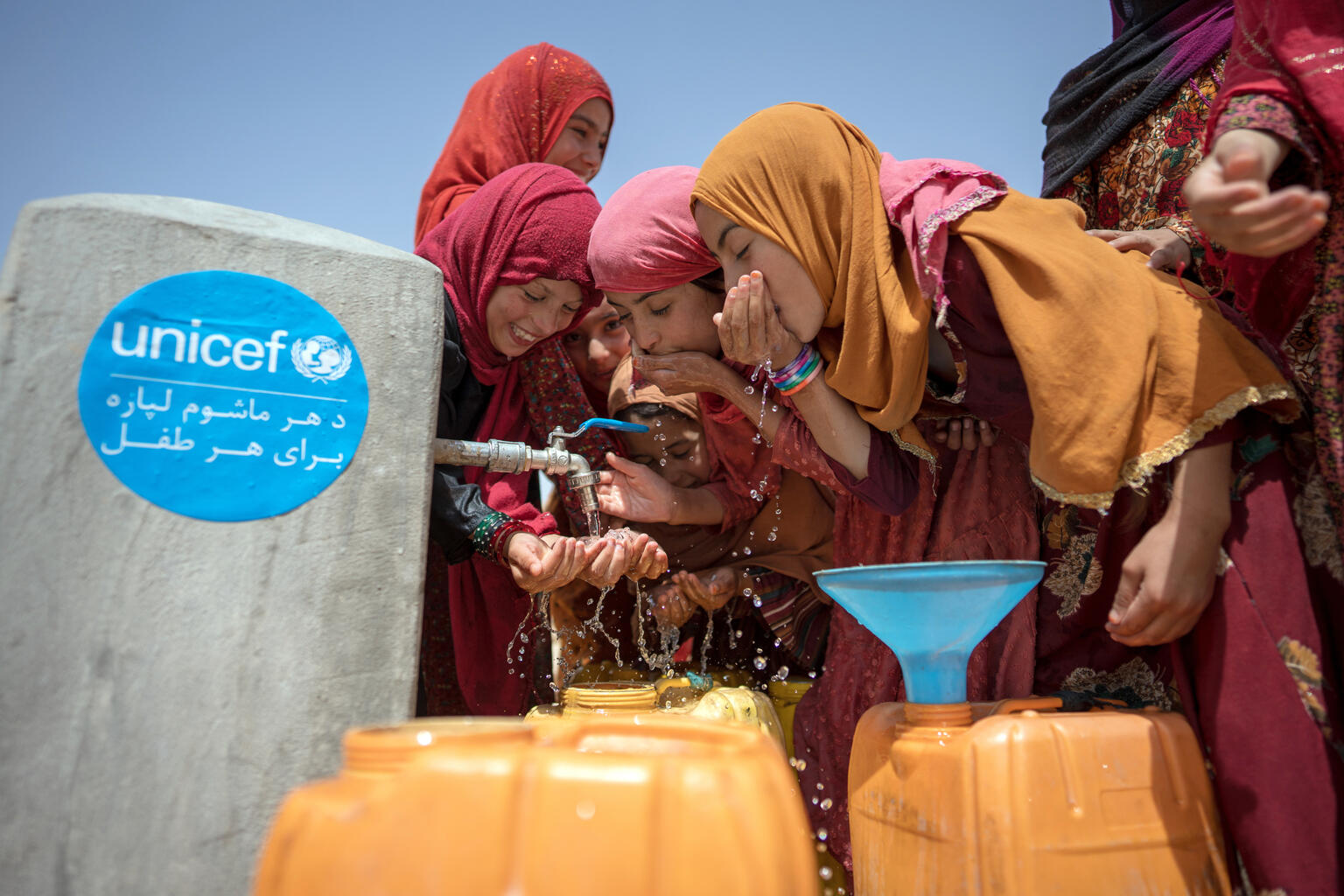ユニセフは、手押しポンプを備えた新しい井戸の建設や、太陽光と風力を利用した給水システムなどの構築を進めています。それにより、人々は危険な思いをすることなく、清潔で安全な水を得られるようになります。また、子どもたちが水くみから解放されることで、学校に通えるようになります。
