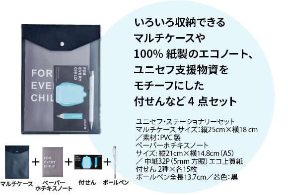 他のユニセフ特製アイテムをお選びいただくこともできます。