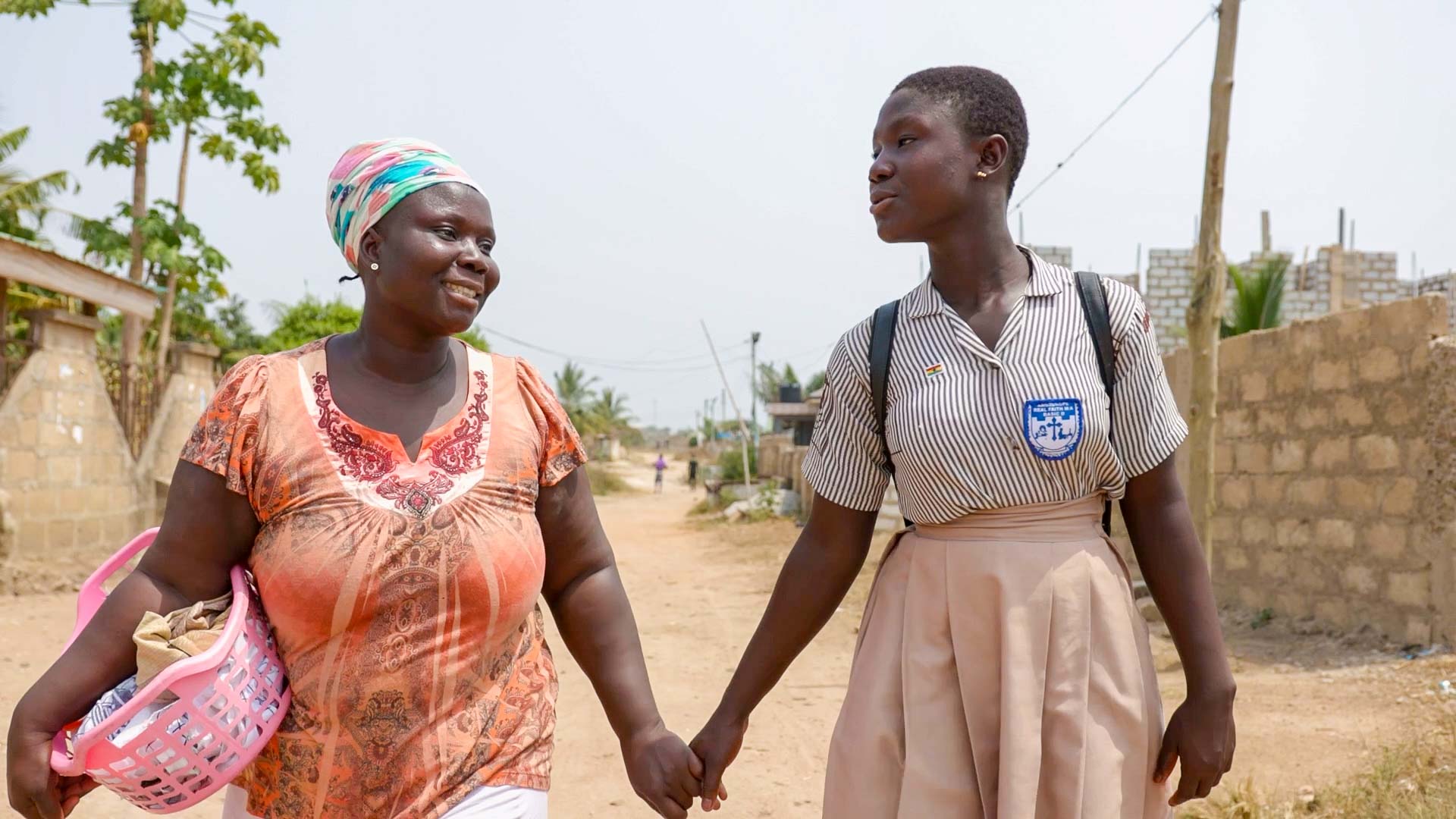 ファウティナさんが通う学校は自宅から遠く、毎日、数マイルの道のりを歩かなければなりません。それでも彼女は、ファッションデザイナーになるという夢に向かって、前に進み続けています。支えているのは、お母さんの愛情です。