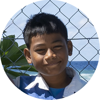 6年生のジョーくんは、海のすぐそばで暮らしています。先日の暴風雨で、家を海から守る防潮堤が壊れ、家の中にまで海水が入ってきました。「今も防潮堤は壊れたままだけど、お母さんは大丈夫よ、って言ってる。でも僕は心配なんだ。強い風で家の隣に生えていた大きなヤシの木も倒れてきて、本当に怖かった」と話します。一人っ子で兄弟もいなく、お父さんも亡くなってしまったジョーくんは、とても心細い思いをしています。