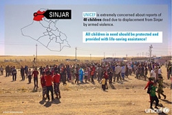 武力衝突のためにイラク北西部のニナワ州のシンジャル(Sinjar)から避難していたクルド系少数派ヤズディ(Yazidi)の子ども40人が死亡したとの報道に、ユニセフは深く憂慮します。