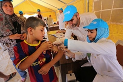 | はしかの予防接種を行うユニセフスタッフ(イラク) |