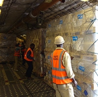 8月23日(土) 早朝、ユニセフ物資供給センターのあるデンマークのコペンハーゲンから、リベリアの首都モンロビアに、保健・衛生用品68トンを積んだ貨物便が到着。これらの物資は、史上最大の感染が広がるエボラ出血熱の対応に役立てられます。