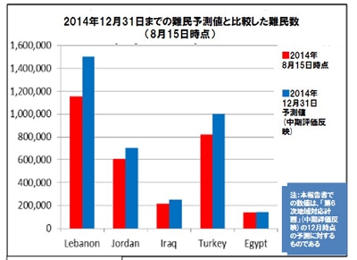 | 2014年12月31日までの難民予測値と比較した難民数 (8月15日時点) |