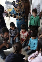 学校に避難している大多数は子どもたちですが、シュリネちゃんたちは、いつもおとなたちに囲まれていることが気になっているようです。ずっと見られているからいたずらもできない、とシュリネちゃんが話します。避難所での生活で一番つらい経験を聞くと、「たくさんのおとなに、いつも見られていることです。子どもだけの時間がほしいわ」とシュリネちゃんが話します。「そんなこと言いながら、おとなが見ている隙を狙って、いたずらするじゃない」と、母親のラミアさんが笑って話しました。