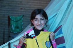 | クルド地方北部のドホーク州で、支援物資の衣類を受け取った女の子。 |