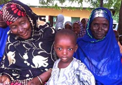 | ウスアにある学校で行われたセレモニーに参加した4歳のラシダちゃんと母親。 |