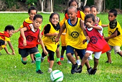 “楽しもう!”プロジェクトはサッカーを取り入れ、太平洋諸国の子どもたちの生活向上を目指しています。この健全な発達のためのスポーツ・プログラムには、主に4つの目的があります。