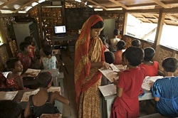 | 「船の学校」で授業を受ける子どもたち。(バングラデシュ) |