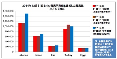 | 2014年12月31日までの難民予測値と比較した難民数 (11月13日時点) |