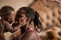 | HIVと共に生きる母親と、抗レトロウイルス治療を受け、HIVの母子感染から守られた生後6カ月の息子。(南アフリカ共和国) |