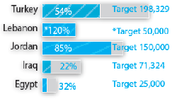 子どもたちやその家族が寒い冬を乗り越えることができるよう、最も支援が必要なシリアの国内避難民のために21万7,600の冬服キットが提供されている。シリア難民を受け入れている国中で、62万5,000人の子どもが防寒服や引換券を受け取った。