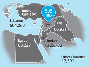 シリア危機:避難民などの数(2014年12月13日時点)