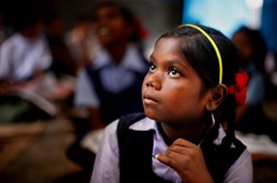 | 小学校で授業を受ける女の子。(インド) |