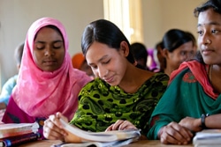 | 授業を受ける14歳の女の子たち。(バングラデシュ) |