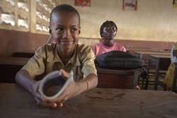 リベリアとシエラレオネでユニセフは、休校状態にあっても教育の機会を提供するラジオ教育プログラムの開発を支援しています。ラジオの数が少ないこと、そして電力供給も不安定なものであるため、最も脆弱な立場に置かれている5万世帯への太陽光発電式ラジオ1万7,000個を調達し、現地のパートナー団体とともに、遠隔地に収録済みのラジオ放送プログラムを提供しました。