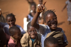 | エボラで休校となっていた学校が再開し、笑顔で学校に再び戻った子どもたち。 |