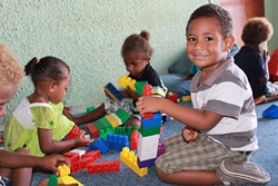 | 60セットのレクリエーションキットを含む、子どもの保護のための支援物資がバヌアツに到着。子どもたちが安全な場所で遊び、心の傷を癒すことができるようにするための支援も行われている。 |
