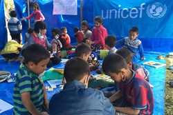 | ユニセフの子どもにやさしい空間で過ごす子どもたち |