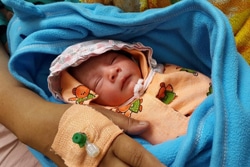 | 5月12日の地震の数時間後、ユニセフが設置したテントの病院で産まれた赤ちゃん。 |