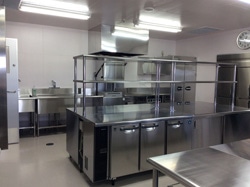 | 吉田保育所新園舎の調理室。災害時は、近隣避難者の方々への炊き出し拠点にもなるという。 |