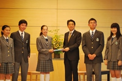 ポジションペーパーを受け取った安倍首相は、「環境や資源など、将来にわたって続いていく問題に、みなさんのような若い方々の意見を取り入れていくのはとても大切です」と述べ、一人ひとりの説明を、ときに微笑み、また真剣に頷きながら耳を傾けました。また、間もなく始まるG7について、「先に豊かになった国の責任として、世界の課題に取り組んでいかなければならない」と意気込みを語りました。