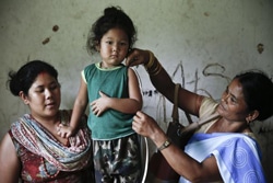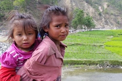 | 地震の被害に遭ったネパールの女の子たち。 |