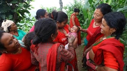 | 4月25日、大地震の日に生まれた赤ちゃんを抱く母親。(ダディン郡) |