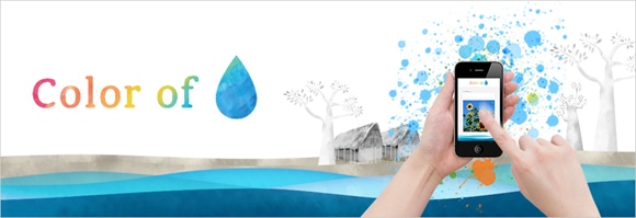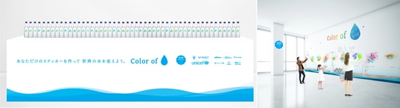 「COLOR OF WATER」は、水環境に恵まれない世界の現状を知っていただき、改善を支援していく、という「TAP PROJECT JAPAN」の2015年活動の取り組みです。藻が浮いた緑の水、土で濁った茶色い水、排水の混ざった灰色の水。世界には、その地域を取り巻く環境によってさまざまな“水の色”が存在し、これらの水を使って生活している地域があります。日頃、私たちが目にする透明な水の他にも世界中にはさまざまな“水の色”があり、その水で生活している地域があるという現状を知ってほしい。そういった想いがこのイベントに込められています。